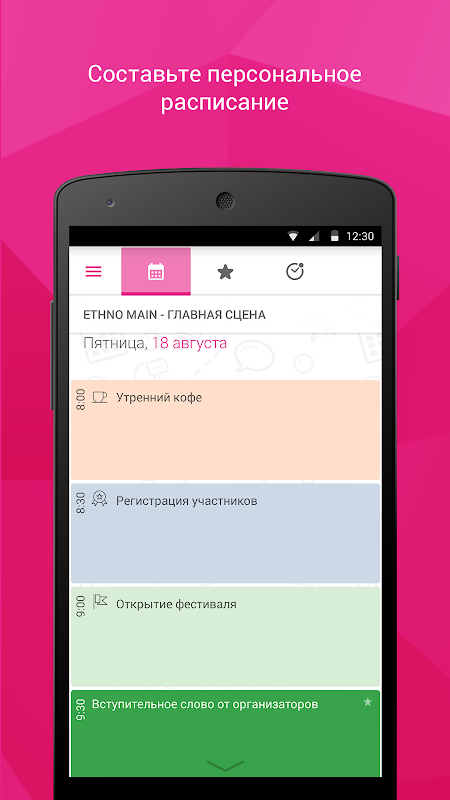 - составить собственную программу и получать оповещения о начале избранных докладов;
