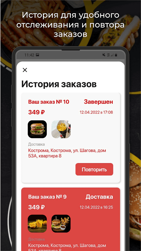 - عرض سجل طلباتك وكرر أي طلب بنقرة واحدة ؛