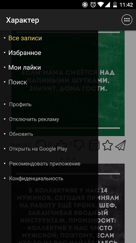 В приложении "Характер" ты найдёшь массу всего интересного для себя и своих друзей. Если ты любишь одновременно юмор, цитаты, умные мысли и красивые картинки, которые просто захватывают дух, то это приложение хорошо подойдёт для тебя! Здесь ты сможешь не только повеселиться, но и запастись креативными идеями и вдохновляющими советами! Хорошее настроение - залог успеха, а получить его не сложно в приложении "Характер"! Все, что тебе понравится, ты сможешь рассказать своим друзьям. 😜