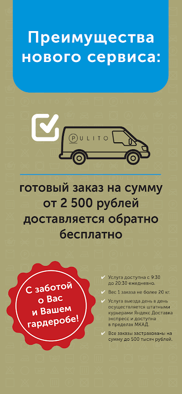 الآن أصبح التنظيف الجاف لـ PULITO دائمًا في متناول اليد. أنت تقدر جودتنا ، ونحن نقدر وقتك!