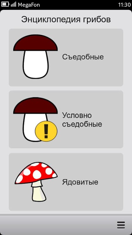 هذا التطبيق هو موسوعة إلكترونية تحتوي على وصف 345 نوع من الفطر والتوت. مع ذلك يمكنك العثور على النموذج كنت مهتما في فئة معينة لصورته، وكذلك كما يبدو من اسمها، وذلك باستخدام مربع البحث الخاص.