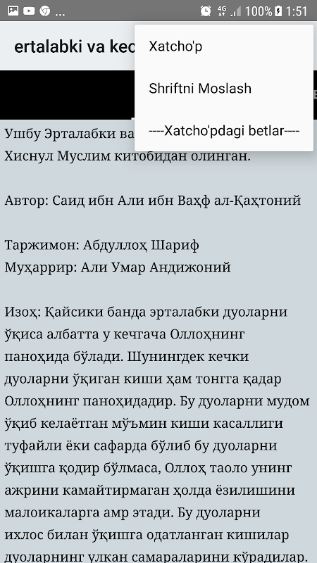 معلومات Эрталабки ва кечки дуолар тўплами APK