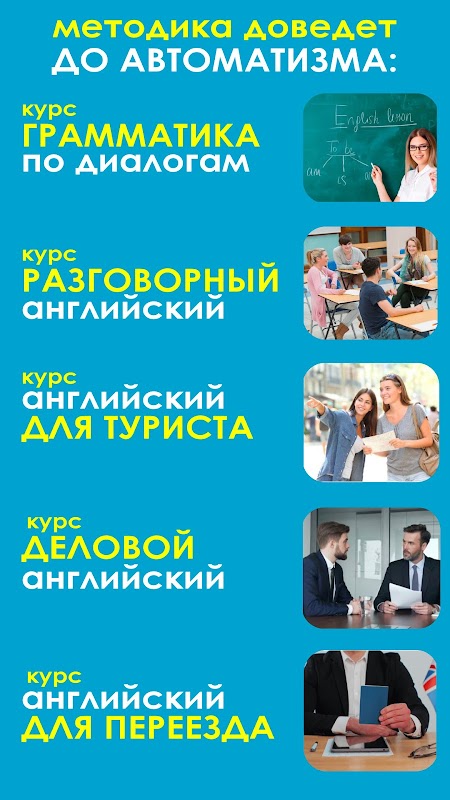 لا توجد أساليب تعلم سلبية مثل الاختبارات القصيرة، أو البطاقات التعليمية، أو نصوص الدردشة. لا حاجة لحفظ قواعد مملة. فقط محادثة نشطة باللغة الإنجليزية باستخدام حوارات حول مواضيع ذات صلة. هذه الدورة مناسبة للمبتدئين والمتوسطين على حد سواء.