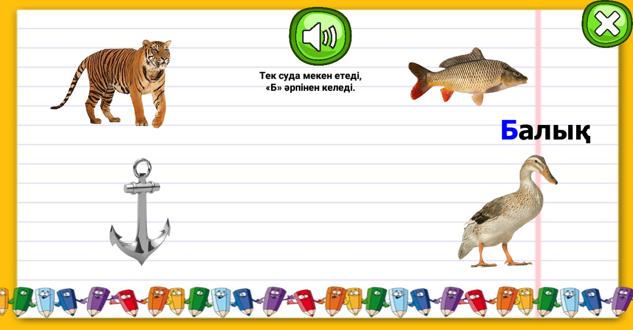 Интеллектуальное обучающее приложение для изучения казахского алфавита детьми вместе со взрослыми либо самостоятельно. На казахском языке.