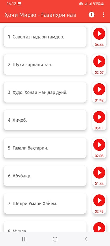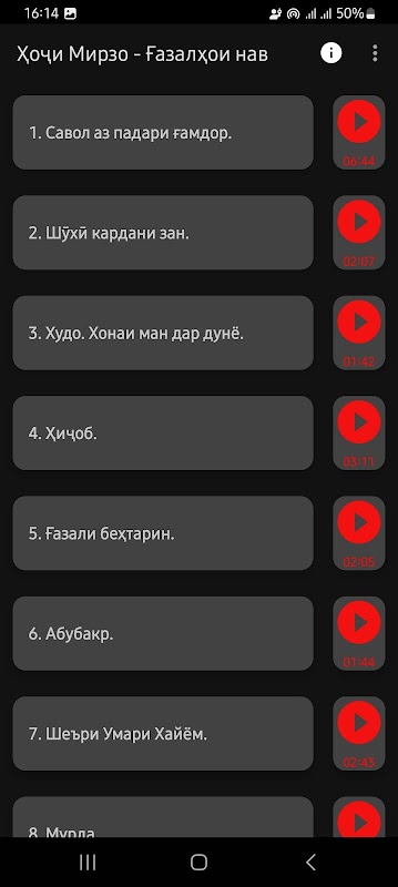 معلومات Ҳоҷи Мирзо - Ғазалҳои нав. APK