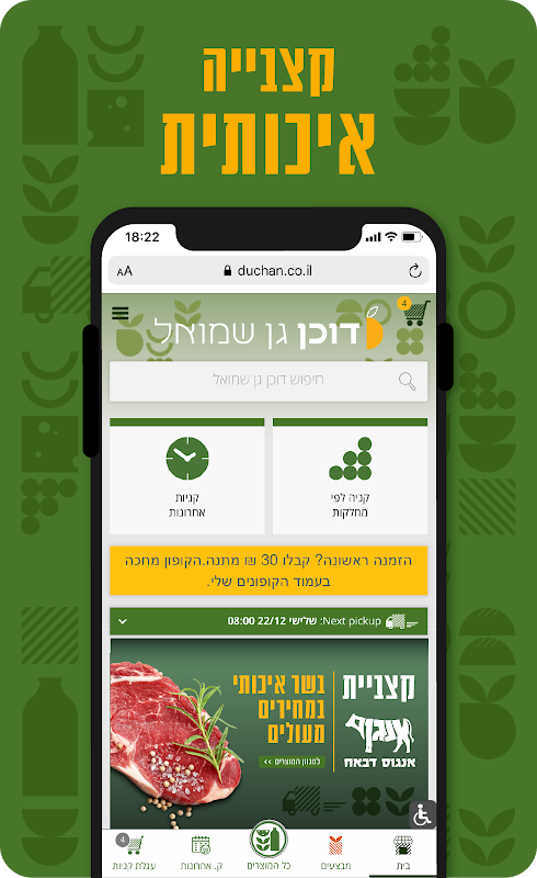 يقدم سوبر ماركت جان شموئيل ستال الجزارين مع اللحوم عالية الجودة من ملحمة دبة والمعجنات الطازجة والأطعمة الجاهزة وقسم الطبيعة والصحة الغنية للغاية (المنتجات الخالية من الغلوتين والمنتجات العضوية والمنتجات النباتية والمنتجات الخالية من السكر (ومجموعة كبيرة ومتنوعة من المنتجات الفائقة التي يتم توصيلها إلى المنزل من يوم لآخر.