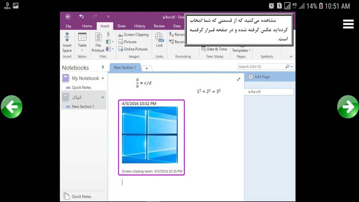 البرنامج التعليمي التفاعلي OneNote 2016 مع الصوت والنص الفارسي ، والأقسام القليلة الأولى المجانية