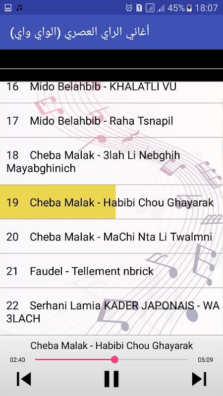 يحتوي التطبيق على كوكثيل من أغاني الراي rai العصرية الجديدة لستايل الواي واي