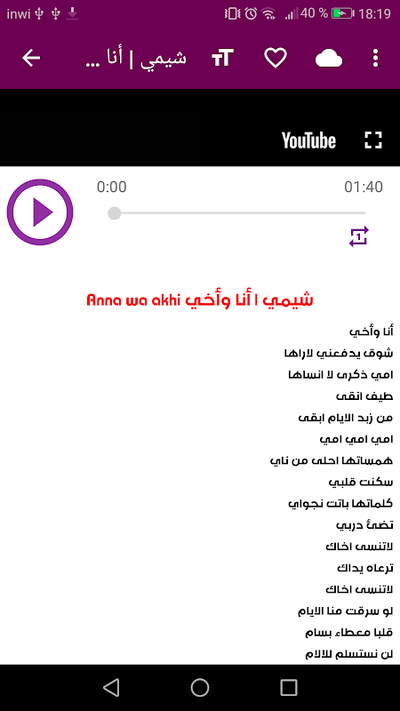 نقدم لكم أغاني شمي بدون نت ، مغنية سعودية ذات الصوت الرائع والتي لقت أغانيها نجاحا باهرا ، وحصدت ملايين المشاهدة على اليوتيوب ، تميزب بعدم إظهارها لوجهها و صورها ، مما جعل الناس تريد إكتشافها أكثر ، إذن يتميز هذا التطبيق بتوفير الأغاني بصيغة مپ3 ، وأيضا فيديو كليب لكل أعنية مأخود من اليوتيوب ، يمكنك مشاهدته إن أردت ، كما وضعنا الكلمات لمعظم الأغاني ، إمكانية وضع فيديوهاتك المفضلة في لائحة المفضلة ، وضع علامة على الڤيديوهات التي سبق لك وشاهدتها ، بالإضافة إلى التوصل بكل تحديث ، نتمنى أن يعجبكم التطبيق ،لا تبخلوا علينا بتقييم بسيط للتطبيق بالإضافة إلى تعليق كي تساعدونا على تطوير التطبيق .