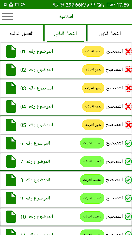 يمكن تصفح كل من ما سبق في وجود الاتصال بالانترنت ويمكن تحميل المواضيع والدروس داخل التطبيق لتصفحها بدون انترنت
