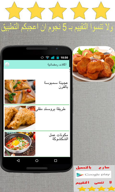 نقدم لكي سيدتي تطبيق يجمع بين أشهر وصفات اكلات رمضانية المطبخ المغربي التي يمكن تحضيرها في المطبخ سهلة ولديدة في هد ا التطبيق ستجدين اكتر من 100 وصفة من الوصفات سلطات والمقبلات اشهية والمشهور في مطبخ المغربي و كدا الد طبخات أكلات سوف تنال إعجاب الجميع ألأدو ق هدفنا واحد اسعاد كل بيت بابسط الطرق حملي هذا التطبيق الان وإستمتعي انت وعائلتك في هذة الوصفات المميزة والشهية في نفس الوقت.اكلات جديدة