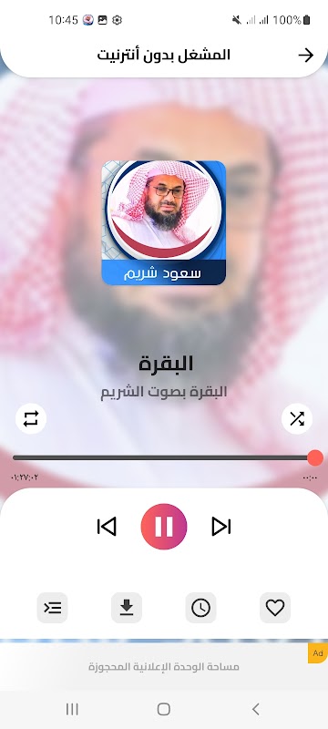 ✔ تطبيق مميز جدا بصوت الشيخ سعود شريم ترتيل بجودة عالية لسورة البقرة كاملة بدون نت