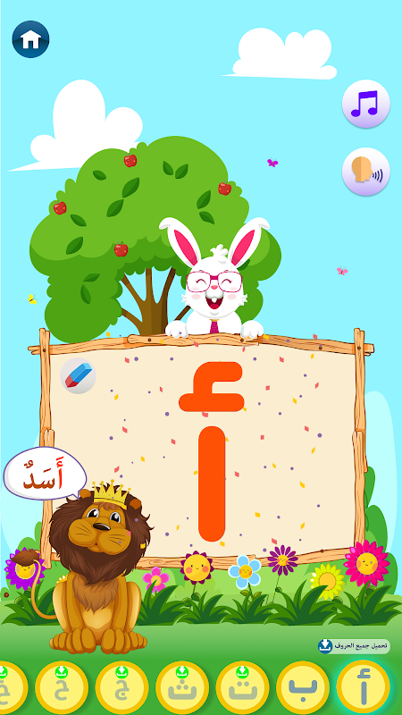 * تعليم المستخدم الحروف الأبجدية بثلاث لغات (العربية - الإنجليزية - الفرنسية) وكيفية نطقها وكتابتها.