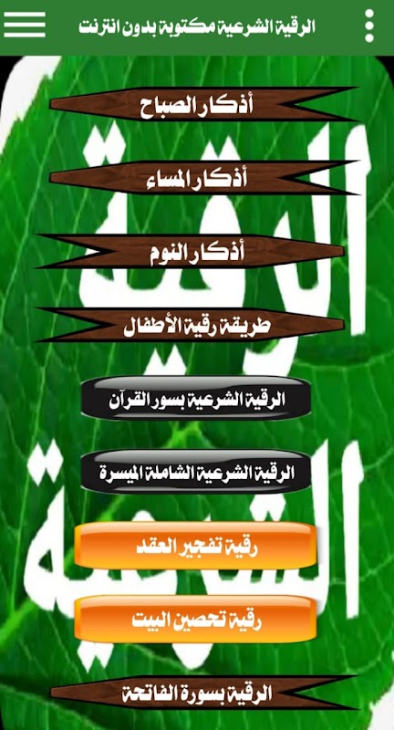 تستطيع قراءة الرقية الشرعية بمنتهى السهولة وهي باقة مختارة بعناية من الكتاب والسنة ، والذي يعمل بدون نت نهائيا.