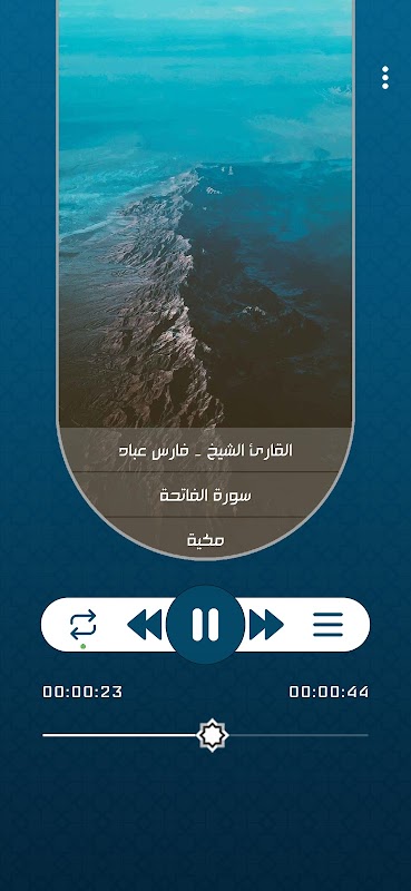 يمكنك أيضاً التحكم في كيفية الإستماع فيمكنك الاستماع لنفس السورة مراراً وتكراراً أو مرة واحدة فقط أو الإستماع لسور القرآن بالترتيب