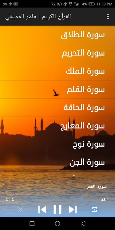 بعدها يمكنك الاستمتاع بتجربة فريدة مع الشيخ ماهرالمعيقلي في تلاوة القرآن mp3.