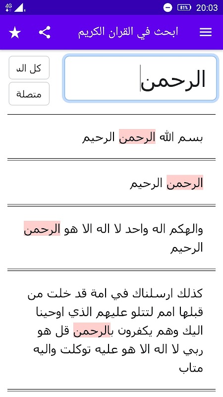 2-البحث في القران الكريم بصورة سريعة ودقيقة.