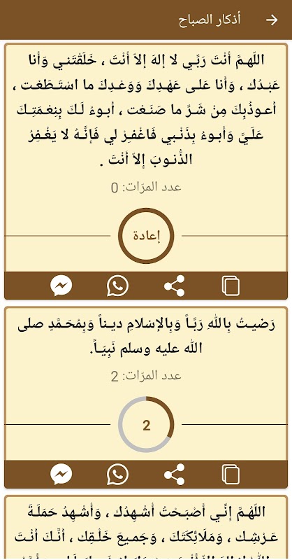 يحتوي التطبيق على الأذكار اليومية للمسلم ومنها: