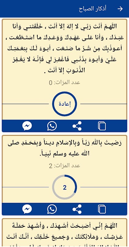 يحتوي التطبيق على الأذكار اليومية للمسلم ومنها:
