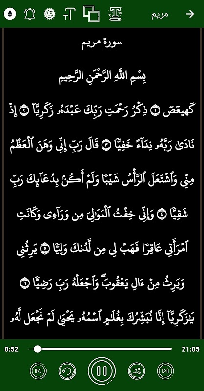 ميزة تكبير الخط لتسهيل قراءة سور القرآن الكريم.