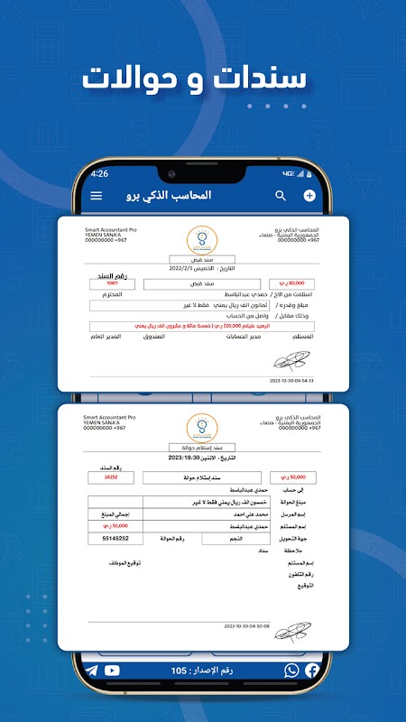 كما يمكنك طباعة التقارير والسندات ومشاركتها عبر الواتساب او اي وسيلة اخرى