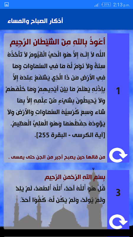 يحتوي التطبيق علي اذكار الصباح والمساء