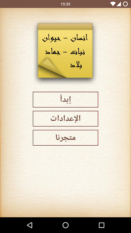 لعبة (انسان حيوان نبات جماد بلاد) المشهورة و المسلية. لعبة تساعد على تطوير المهارات و تنمية المعلومات لدى اللاعبين بالإضافة إلى أنها تساعد في سرعة البديهة. لعبت لأجيال على الورق والآن نقدم لكم إصدار الأندرويد منها.