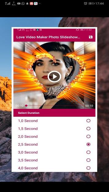 مقطع فيديو مكوّن من مجموعة صور الحب مع موسيقى ترافق هذا الفيديو على اى موبيل او تاب او اى اجهزة حديثة تستخدم نظام الاندرويد). بحيث لا يتطلّب إنتاج المقطع إلا بعض النقرات و سوف يكون احترافي تماما، فيتم اختيار الصور أو تصويرها، البرنامج يعتمد اسلوب دمج الصور و تجميعها بالترتيب و الطريقة التى تناسبك مع تحديدك للفترة الزمنية لعرض كل صورة ويجعلك تحتفظ بألبومات رائعة، و لكن ليس هذا فقط فالبرنامج يمكك اختيار المقطوعة الموسيقية المناسبة لهذه الصور وبهذا تحصل علىفيديو و بمونتاج رائع دون الحاجة لخبير في تصميم ومونتاج الفيديو، ومن ثم ببساطة مشاركة النتيجة مع الأحباب و الأصدقاء.
