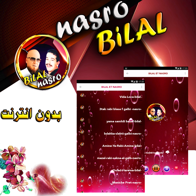 -تجدون في هدا التطبيق اغاني بدون انترنت للفنان بلال و كدالك دو الصوت العدب الرائع نصرو.