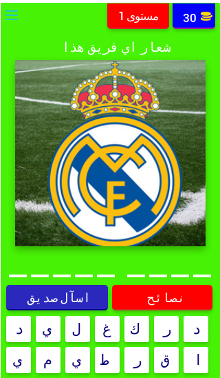 تحدي لكل عشاق الكرة المستديرة حول العالم العربي يكمل التحدي في معرفة اسماء فرق الكرة في الصورة ,يضم التحدي اشهر و كبار فرق في العالم من دوريات مختلفة ,لا تقلق ان لم تعرفالفريق يمكنك استعمال نقاطك في حدف العروف او اجتياز المرحلة