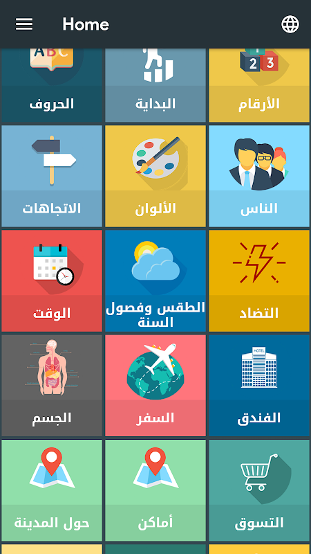 • يحتوي على عدة أقسام لتتعلم كل شيء باالانجليزية.