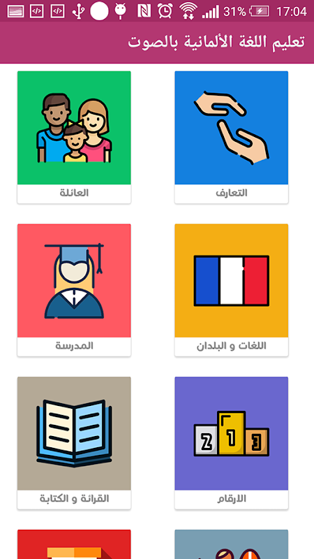 تطبيق تعلم اللغة الالمانية بالصوت و الصورة ، يمكنكم من تعلم اللغة الالمانية بسرعة و بسهولة وبدون معلم، وأيضا سهل الاستخدام و بجودة صوت عالية ، و يعمل من دون الحاجة إلى انترنت.