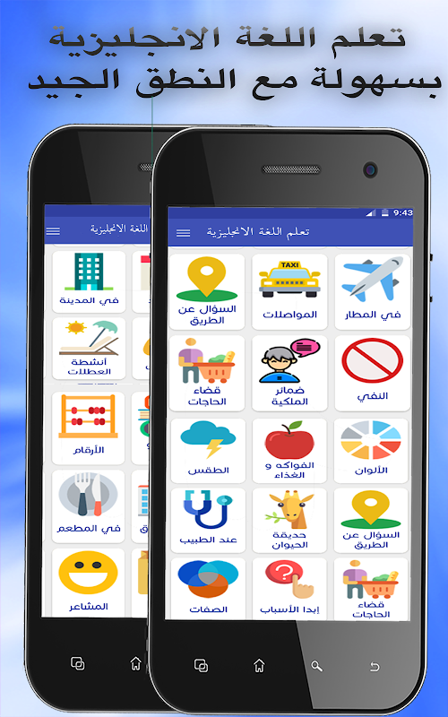 تطبيق تعلم اللغة الانجليزية سهل الاستخدام في المحمول خصوصا للمبتدئين الذين يرغبون في تعلم الانجليزية بعبارات انجليزية بسيطة من شأنها أن تعطي للزوارامريكا الثقة في استعمال اللغة.لان تعلم اللغة الانجليزية اعتمد على استخدام اللغة الأم و الأصيلة في النطق مع ضمان تسهيل الفهم من طرف المستعمل و ايضا المتلقي.هدا التطبيق تعلم اللغة الانجليزية موصى به للسياح ورجال الأعمال الذين يزورون امريكا.