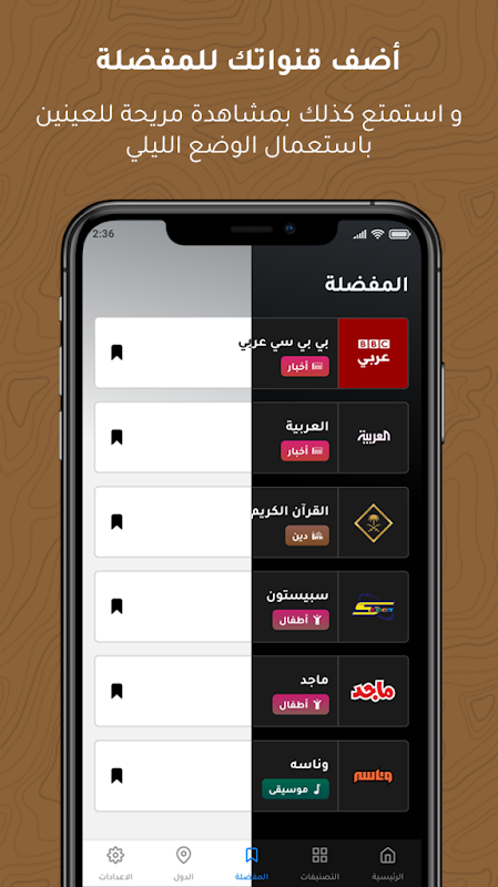 يوفر تطبيق قنوات البث المباشر لأكثر من 350 قناة عربية بجودة عالية و بدون تقطيع، استمتع بتشغيل القنوات بجودات عالية و في أي وقت تريد، مع توفر جودات متعددة تناسب سرعة الشبكة لديك.