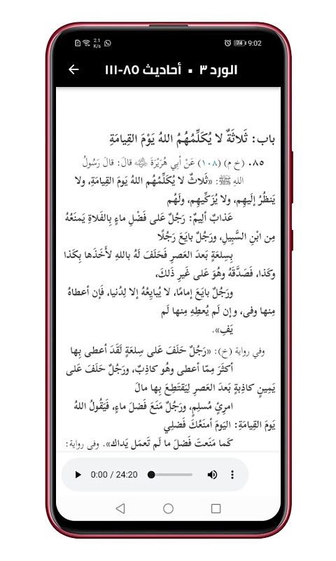 يحتوي التطبيق على مختصر الصحيحين صحيح بخاري وصحيح مسلم صوتي ومكتوب