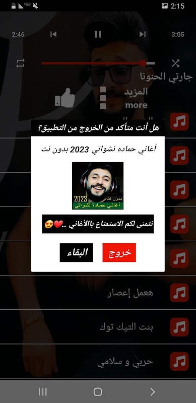 يحتوي التطبيق على اروع اغاني حمادة نشواتي 2023 بدون انترنت