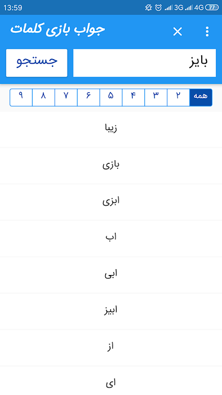 جواب کامل تمامی مراحل آمیرزا،فندق،باقلوا،جدولانه،گردو،پشمک،آفتابه و تمامی بازی های حدس کلمات را در این برنامه می توان یافت.