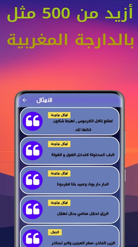 . يدعم أكثر من 500 حكمة و مثل شعبي مغربي قديم *