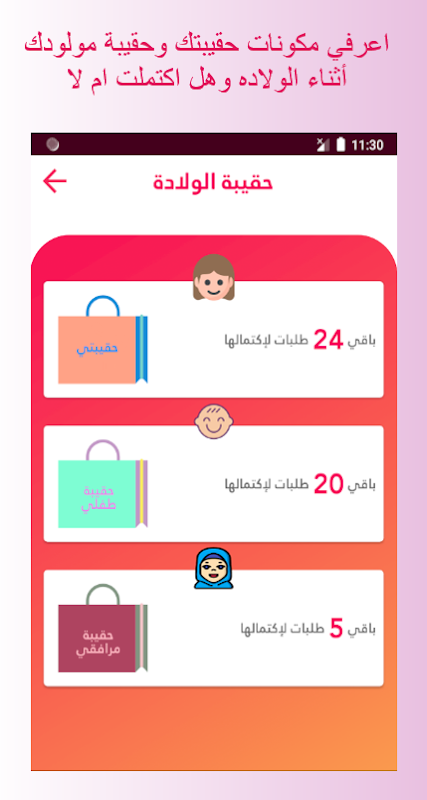 اضافة اداة شنطة الولادة لمعرفة احتياجاتك وطفلك وقت الولادة ومتابعة ماينقصك منها
