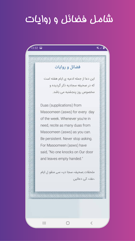 دعای روز دوشنبه منقول از امام سجاد (ع) در کتاب صحیفه سجادیه به همراه صوت و ترجمه فارسی روان و رابط گرافیکی زیبا و امکان اسکرول خودکار متن به همراه امکان بزرگنمایی متن.