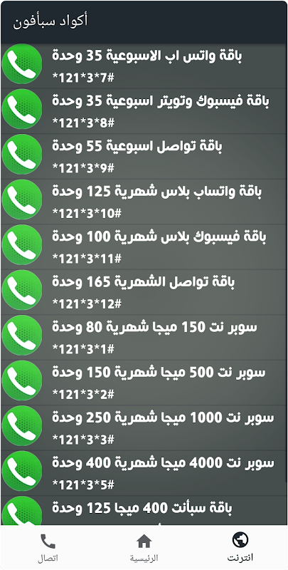1.يحتوي على جميع اكواد الباقات والاتصال