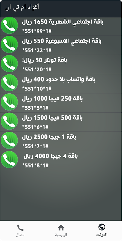 التطبيق به معظم أرقام الخدمات العامة وخدمات شركات المحمول لتستطيع الوصول لها بسهولة ويمكنك تثبيت الباقات لجميع الشبكات بضغطه زر فقط....