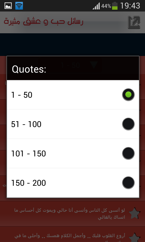 تطبيق رسائل حب وشوق يضم :