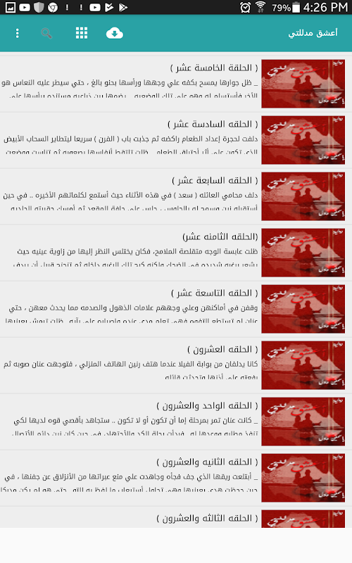 تطبيق قصة أعشق مدللتي برعاية لكي اب يعمل بدون انترنت.