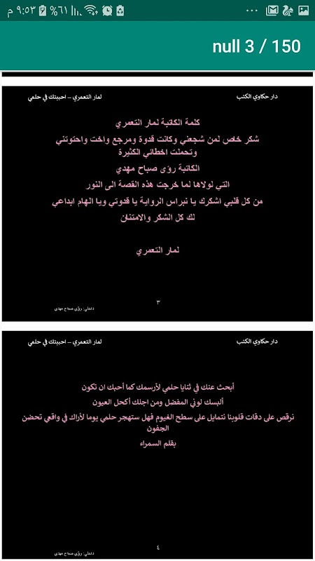 رواية احببتك في حلمي مع تطبيق بسيط وبه عداد الصفحات وخاصية حفظ الصفحات