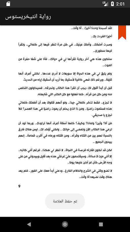 يمكنكم وضع علامة على الصفحة المراد حفظها بمجرد الضغط على الشريط أعلاه، نتمى أن تستمتعوا بقراءة الرواية