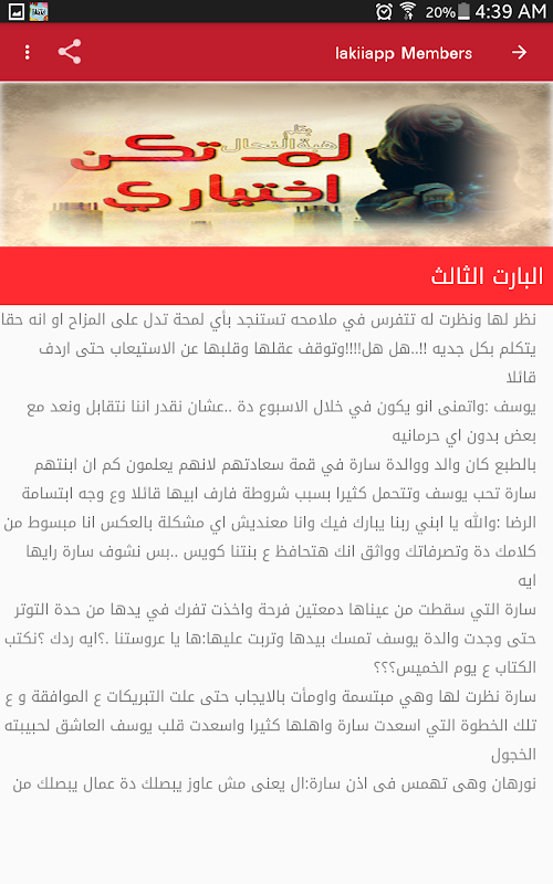 تطبيق قصة لم تكن إختياري برعاية لكي اب يعمل بدون انترنت.