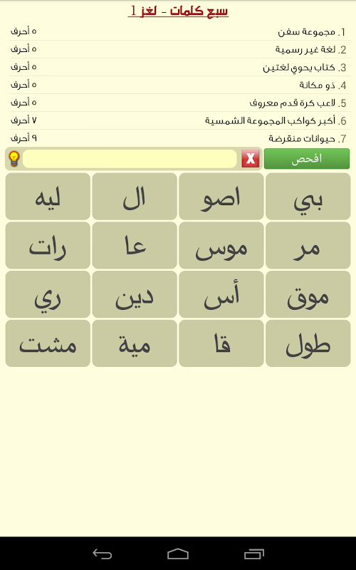 في كل لغز لديك سبع رموز شيقة وذكية في شتى المجالات ولديك ايضا مقاطع كلمات