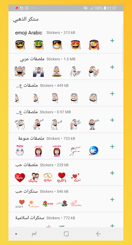 يحتوي تطبيق ستكر واتس الذهبي على مجموعة كبيرة من ملصقات المختلفة: