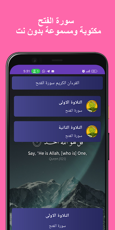 سماع سورة الفتح بصوت جميل و مفهوم بدون انترنت بعدة تلاوات منها :